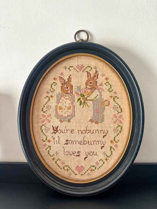 Vintage Bunny Love Framed Needlepoint