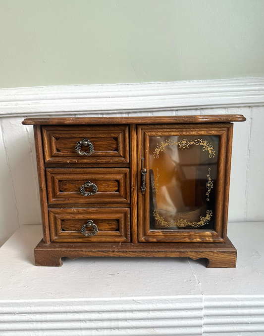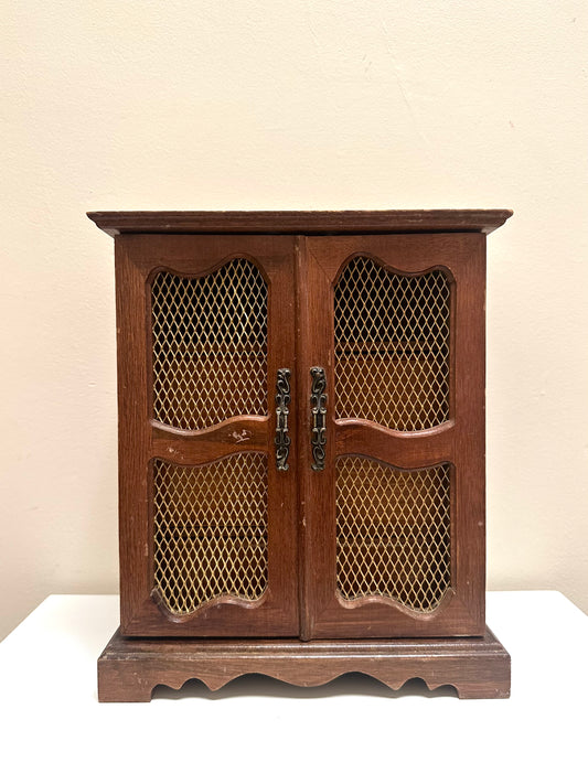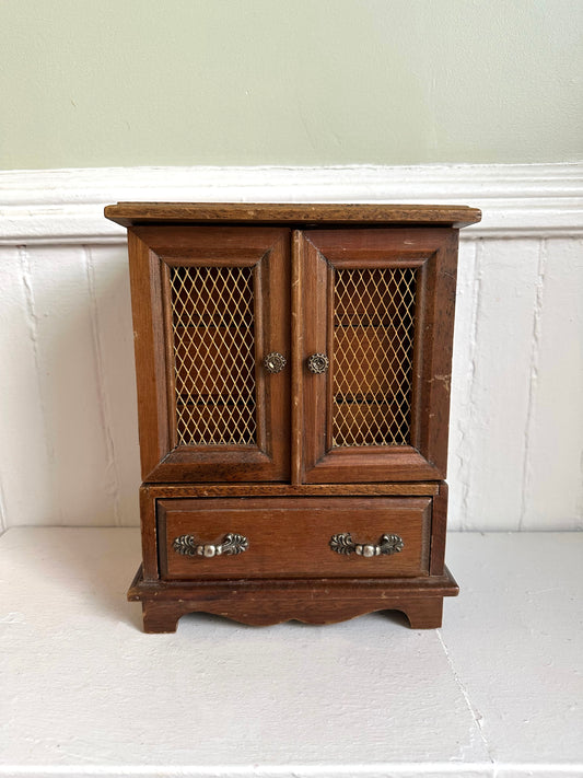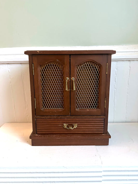Vintage Wood Armoire Jewelry Box with Doors