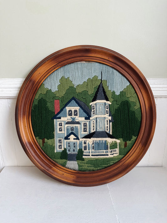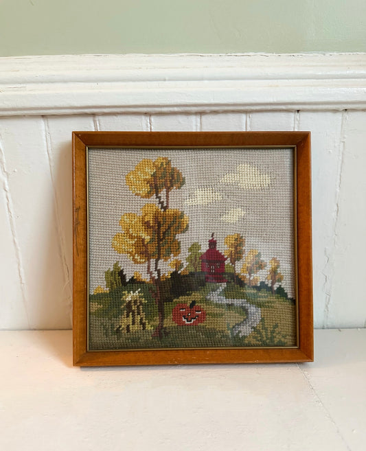 Vintage Pumpkin Fall Scene Framed Needlepoint