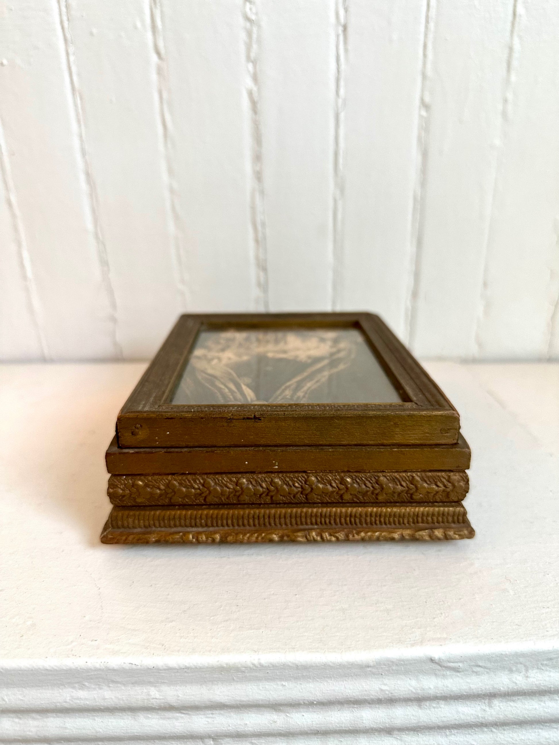 Antique Framed Jewelry Box with Classical Boudoir Scene