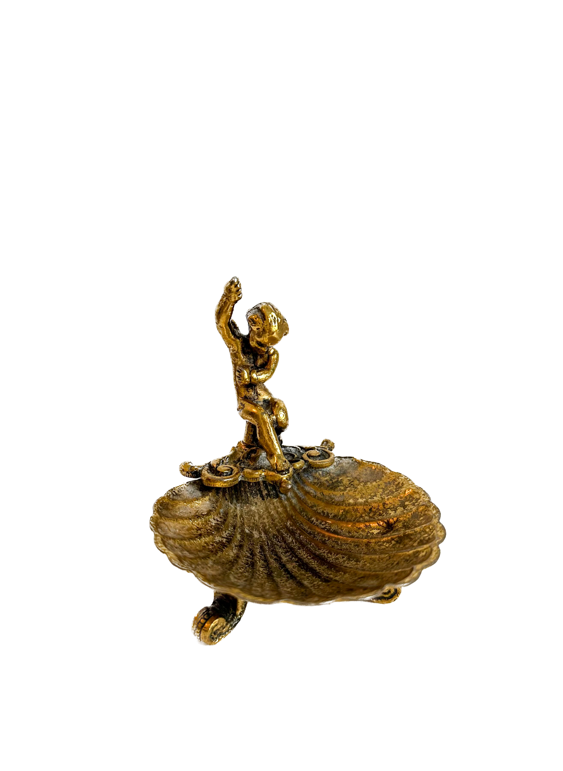 Keep your favorite ring safe and beautifully displayed with this mini ring dish, perfect for a dresser, vanity, or bathroom sink. A delicate gold cherub rests atop a footed seashell, bringing a touch of timeless glamour and instantly elevating any space it graces.