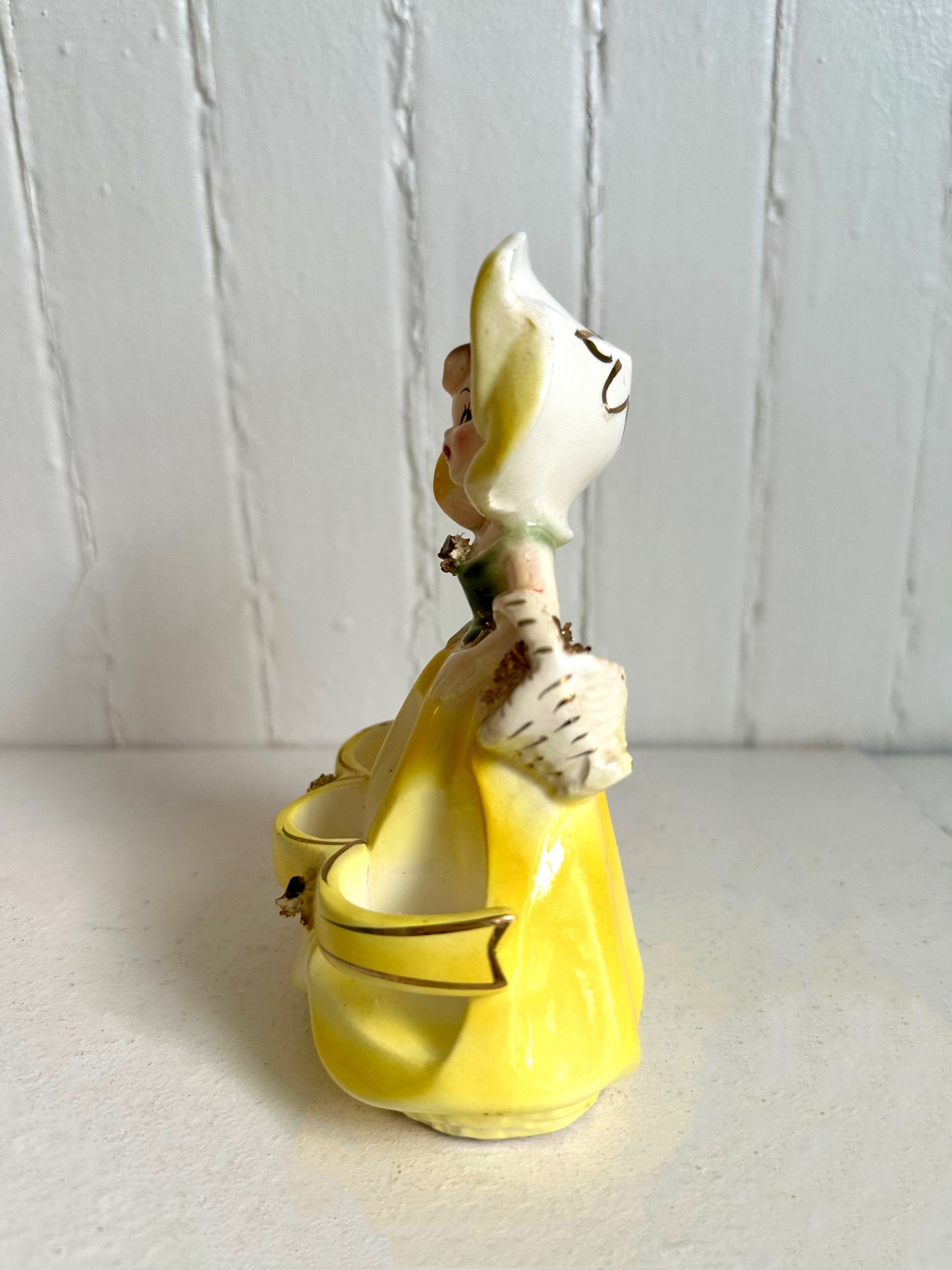 Vintage Anthropomorphic Enesco Flower Girl Lipstick Holder in Yellow