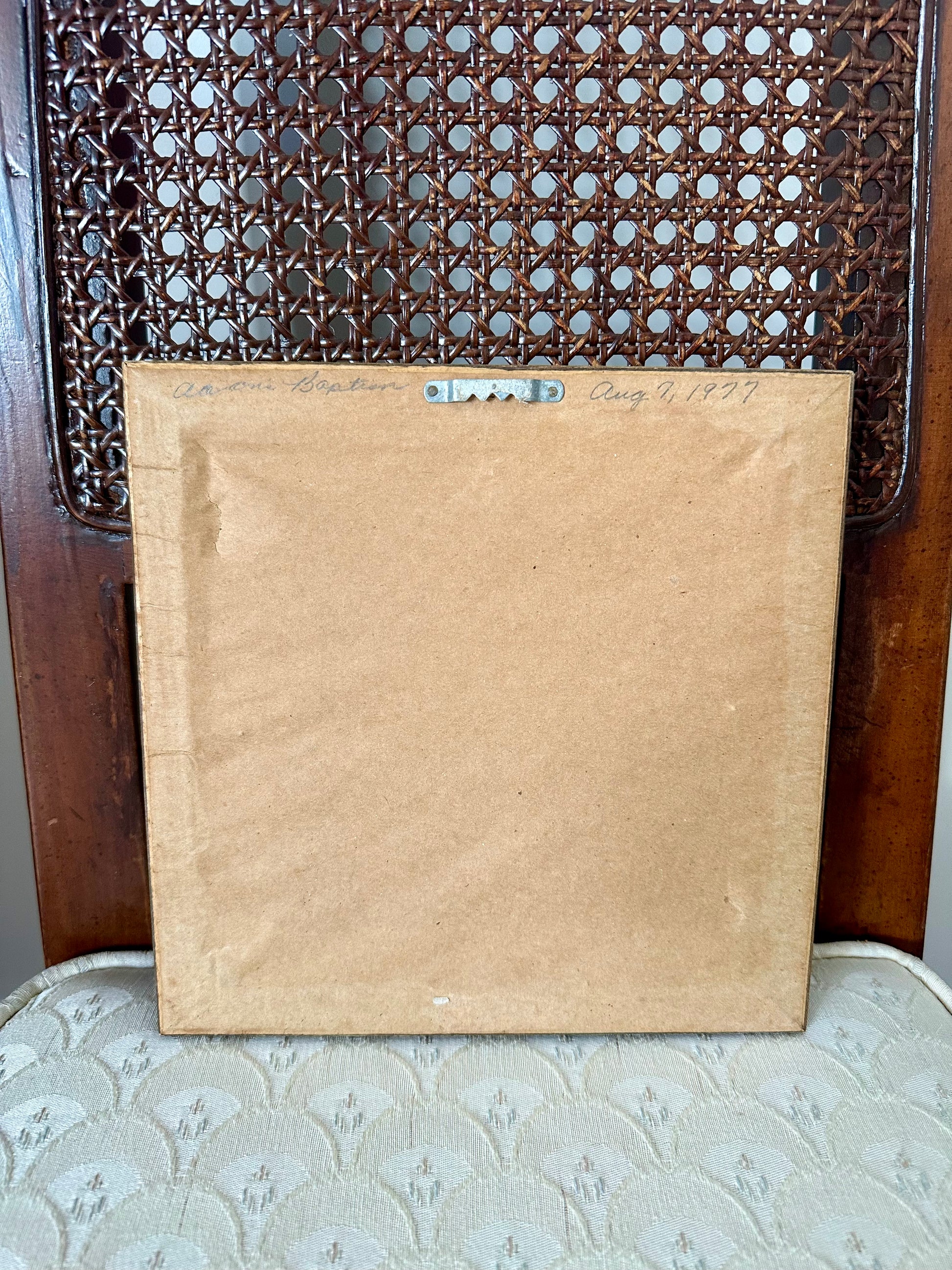 This sweet vintage needlepoint depicts a whimsical goose dressed in a pink bonnet and shawl, captured mid-stride. Perfect to bring a cozy, country-cottage feel to any room or nursery.