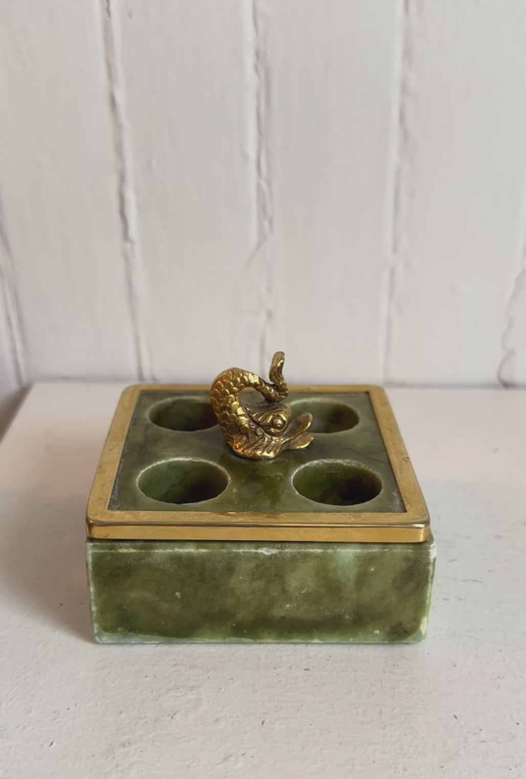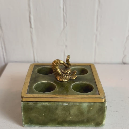 Vintage Green Marble & Brass Koi Fish Lipstick Holder