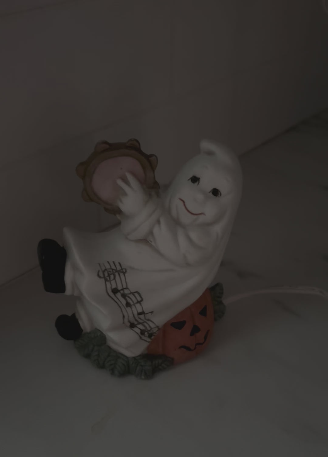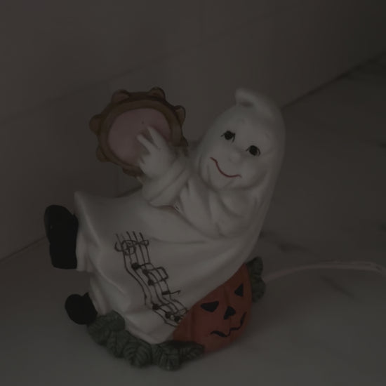 Vintage Halloween Ghost Light with Tambourine & Pumpkin
